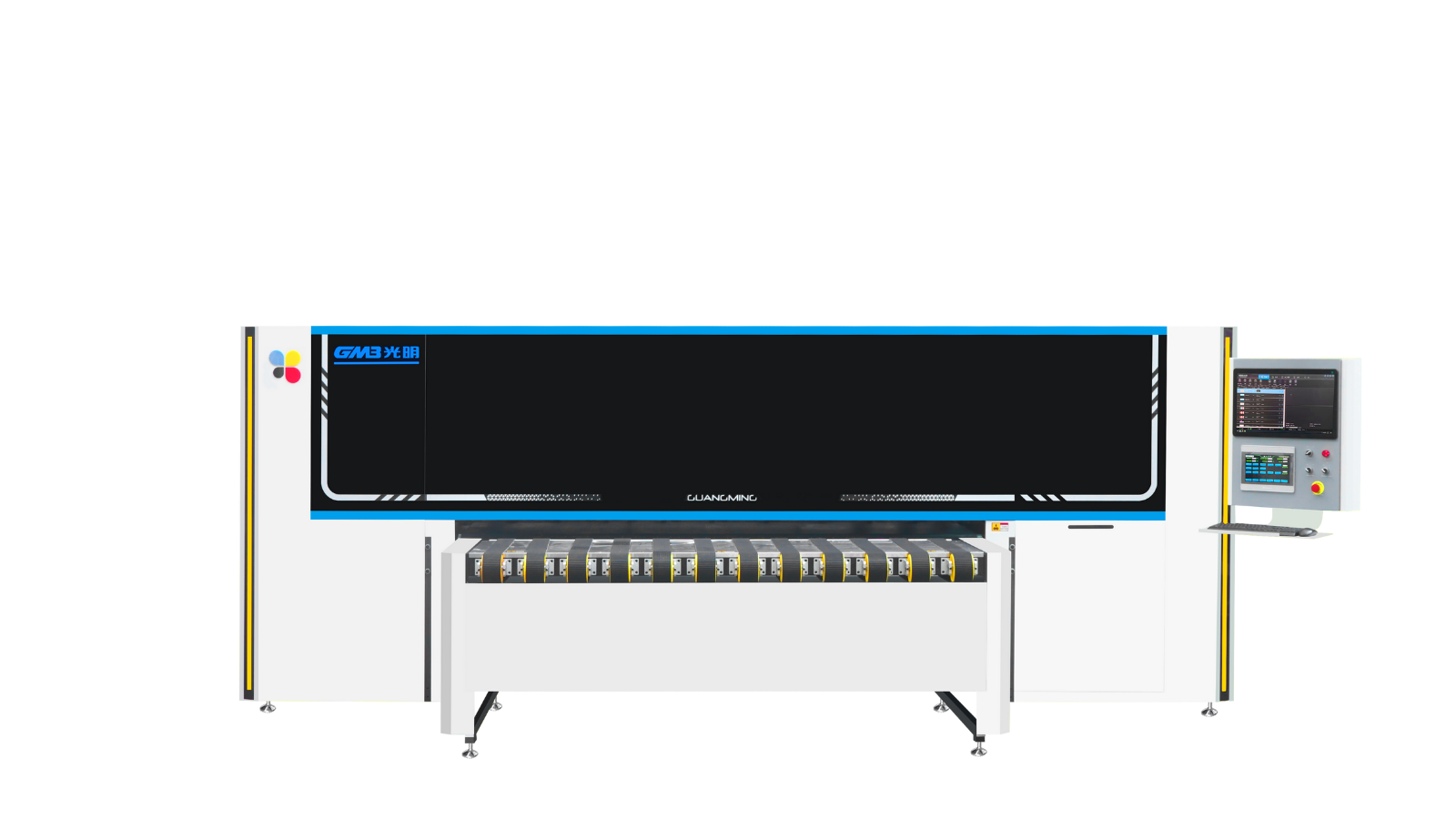 Maszyna wyposażona jest 32 głowicy Epson, pracujących w trybie CMYK, co pozwala uzyskać stabilny